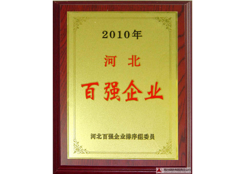 Xingtai Steel was awarded the biggest 100 Enterprise on 2010 of Hebei