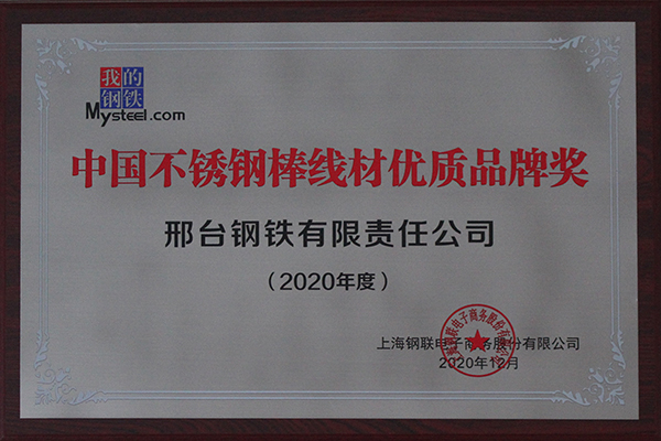 邢鋼獲中國不銹鋼棒線材優(yōu)質品牌獎