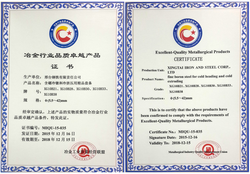 含硼冷鐓和冷擠壓用精品盤條XG10B21、XG10B28、XG10B30、XG10B33、XG10B38φ(5.5~42)mm獲冶金行業(yè)品質(zhì)卓越產(chǎn)品