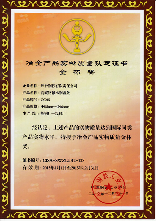 高碳鉻軸承鋼盤條GCr15φ5.5~16mm獲冶金產(chǎn)品實物質(zhì)量金杯獎