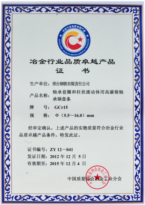 軸承鋼盤(pán)條GCr15φ5.5~16mm獲得冶金行業(yè)品質(zhì)卓越產(chǎn)品