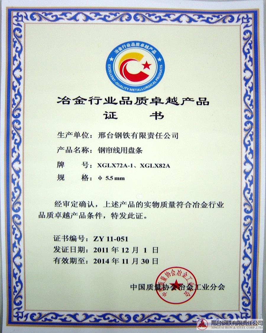 鋼簾線盤(pán)條XGLX72A-1,XGLX82A-1 φ5.5mm獲冶金行業(yè)品質(zhì)卓越產(chǎn)品