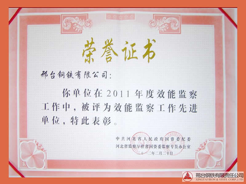 - 邢鋼榮獲“2011年度效能監(jiān)察工作先進(jìn)單位”