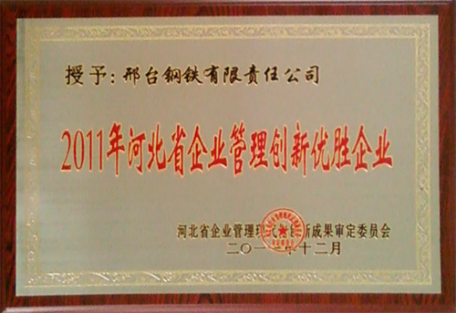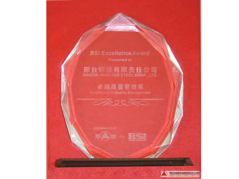 2012年4月25日,BSI公司(中國(guó))在上海舉行了首次“卓越質(zhì)量管理獎(jiǎng)”頒獎(jiǎng)儀式,并授予邢臺(tái)鋼鐵有限責(zé)任公司“卓越質(zhì)量管理獎(jiǎng)”稱號(hào),同時(shí)獲獎(jiǎng)的還有寶鋼等其他10幾家企業(yè)。