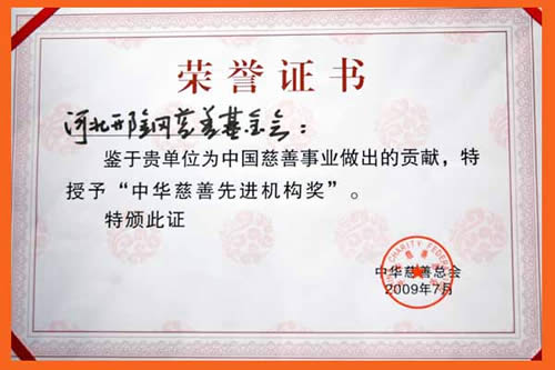 2009年7月,中華慈善總會(huì)授予邢鋼慈善基金會(huì)“中華慈善先進(jìn)機(jī)構(gòu)獎(jiǎng)”。
