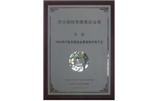 2009年8月,邢鋼榮獲2009年IT服務(wù)制造業(yè)績效標(biāo)桿用戶獎(jiǎng)。