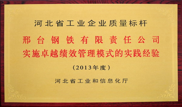 - 邢鋼實(shí)施卓越績(jī)效管理模式的實(shí)踐經(jīng)驗(yàn)獲省工業(yè)企業(yè)質(zhì)量標(biāo)桿