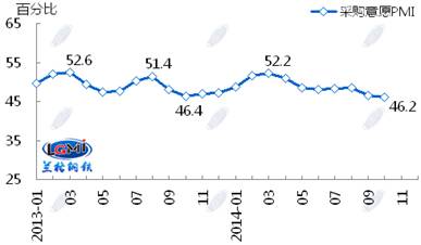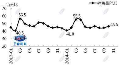 蘭格鋼鐵信息研究中心統(tǒng)計(jì)發(fā)布2014年10月鋼鐵流通業(yè)PMI總指數(shù)為47.8,環(huán)比微升0.6個(gè)百分點(diǎn)(見(jiàn)圖1),顯示鋼鐵流通市場(chǎng)活躍度略有好轉(zhuǎn)。從各項(xiàng)分指數(shù)看,10月份鋼鋼鐵流通業(yè)PMI調(diào)查的10項(xiàng)分指數(shù)5升5降。其中,企業(yè)銷(xiāo)量增加,下游訂單增加,但企業(yè)對(duì)后市較為謹(jǐn)慎,采購(gòu)意愿未增(見(jiàn)圖2)??傮w判斷11月鋼鐵流通市場(chǎng)需求景氣微升。
