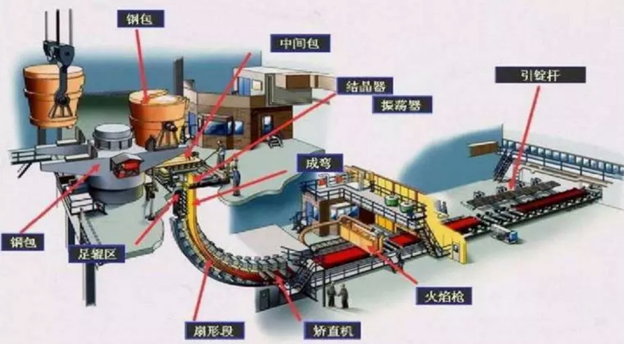 連鑄:連續(xù)鑄鋼(英文Continuous Steel Casting)的簡稱,可實現(xiàn)不間斷連續(xù)生產(chǎn)。與模鑄相比,連鑄技術(shù)具有提高金屬收得率、改善勞動環(huán)境、自動化程度高、鑄坯質(zhì)量好等顯著優(yōu)勢,現(xiàn)目前大多數(shù)鋼廠都采用連鑄澆注,可生產(chǎn)方坯、圓坯、板坯等。