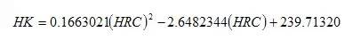 因為努氏硬度與洛氏硬度的對應(yīng)曲線類似于拋物線,故由曲線得出近似的換算公式為