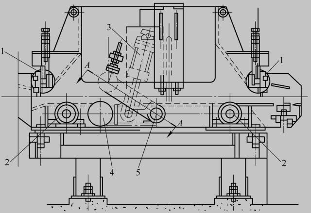 l-導輥;2-輥道;3-氣缸;4-活套輥;5-轉(zhuǎn)軸