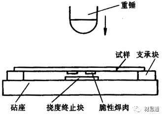 試樣冷卻到一定溫度后放在砧座上,使有焊肉的軋制面向下處于受拉側(cè),然后落下重錘進行打擊。隨著試樣溫度的下降,其力學行為發(fā)生如下變化: