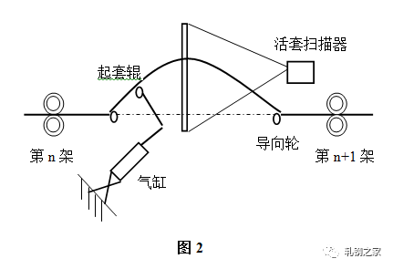 活套是用來檢測和調(diào)節(jié)相鄰機架間速度關系從而實現(xiàn)無張力軋制的設備。活套主要由活套掃描器、起套輥及其調(diào)節(jié)器等組成,結構如(圖2)所示。主要作用是根據(jù)檢測的套位信號來控制上游軋機的速度,實現(xiàn)自動控制系統(tǒng)。