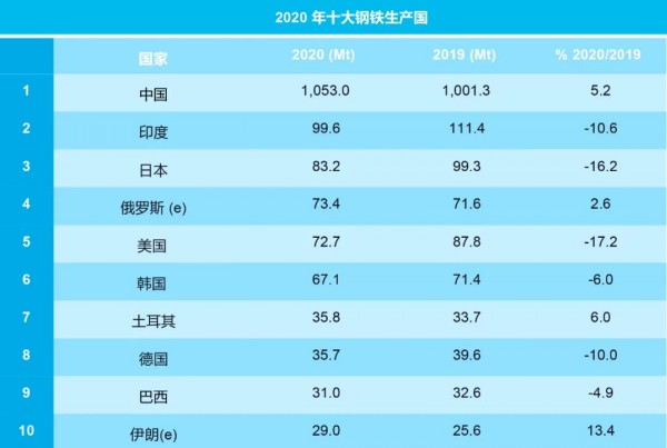 據(jù)世界鋼協(xié)統(tǒng)計,2020年,全球粗鋼產(chǎn)量達到18.64億噸,同比下降0.9%。