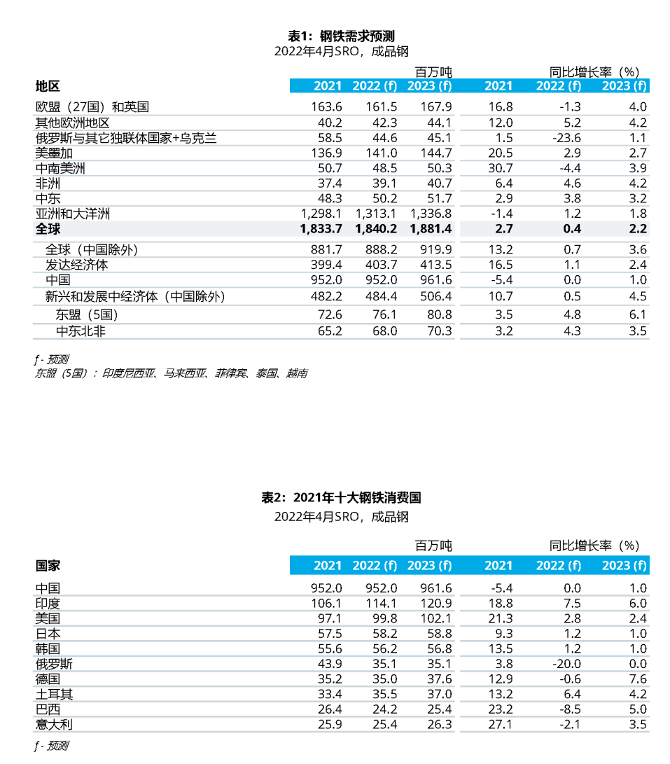 2023年全球鋼鐵需求預測具有高度不確定性。我們預測的前提,是俄烏雙方在烏克蘭的對峙將在2022年內(nèi)走向終結(jié),但對俄羅斯的制裁很大程度上仍將維持不變。