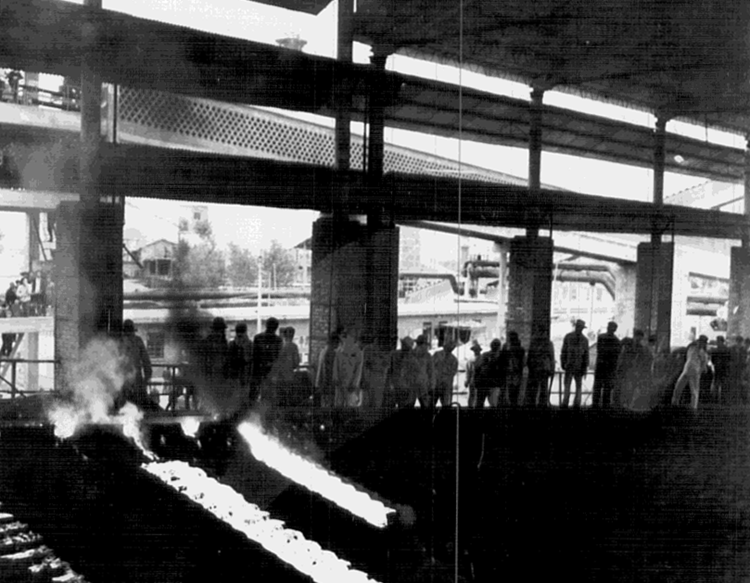 圖為1978年邢鋼鑄鐵出坯的情景,鐵塊紅火,邢鋼人為出爐的鐵水歡呼。兩年后的1980年,邢鋼10000噸低磷低硫高質(zhì)量“人參鐵”的鑄造生鐵出口到日本。