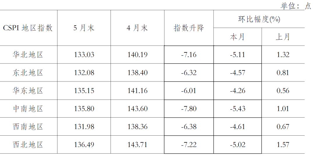CSPI分地區(qū)鋼材價(jià)格指數(shù)變化情況