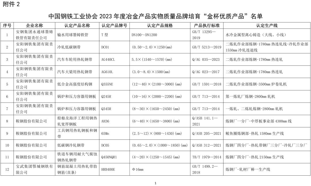 冶金產(chǎn)品實(shí)物質(zhì)量品牌培育產(chǎn)品認(rèn)定活動(dòng),是中鋼協(xié)在鋼鐵行業(yè)組織開展的認(rèn)定評(píng)價(jià)活動(dòng),也是國(guó)內(nèi)唯一一項(xiàng)針對(duì)鋼鐵行業(yè)實(shí)物產(chǎn)品質(zhì)量進(jìn)行認(rèn)定的評(píng)價(jià)活動(dòng)。旨在評(píng)選行業(yè)標(biāo)桿產(chǎn)品,擴(kuò)大中國(guó)鋼鐵行業(yè)優(yōu)秀產(chǎn)品影響力及占有率,提升產(chǎn)品品牌價(jià)值與口碑。通過(guò)的產(chǎn)品,不僅代表了產(chǎn)品質(zhì)量的穩(wěn)定性和先進(jìn)性,更反映了企業(yè)管理的卓越性,是得到行業(yè)內(nèi)專家、同行和客戶都認(rèn)可的優(yōu)秀產(chǎn)品,對(duì)增加產(chǎn)品銷量、提高產(chǎn)品品牌起著重要的作用,是一種無(wú)形價(jià)值和財(cái)富。