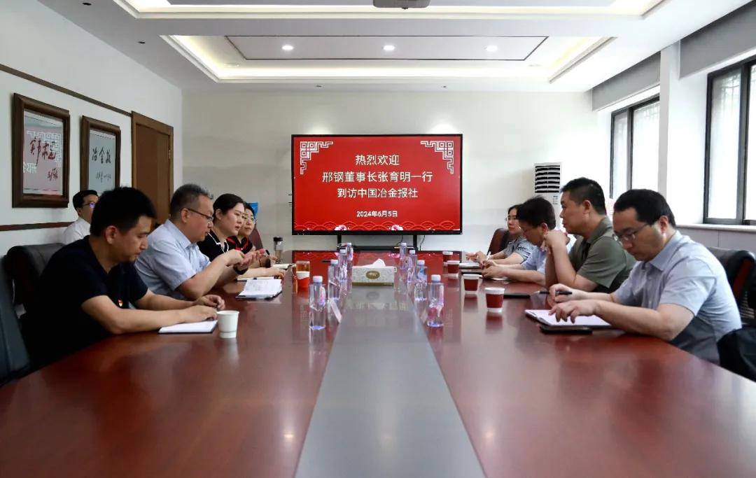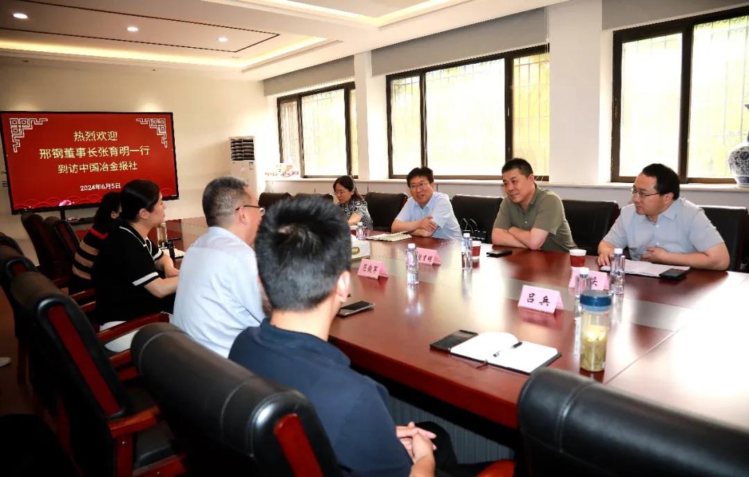 6月5日下午,邢臺鋼鐵有限責(zé)任公司董事長張育明一行到訪中國冶金報社,中國鋼鐵工業(yè)協(xié)會副秘書長,中國冶金報社黨委書記、社長范鐵軍熱情歡迎張育明一行的到來,雙方進(jìn)行了座談交流。
