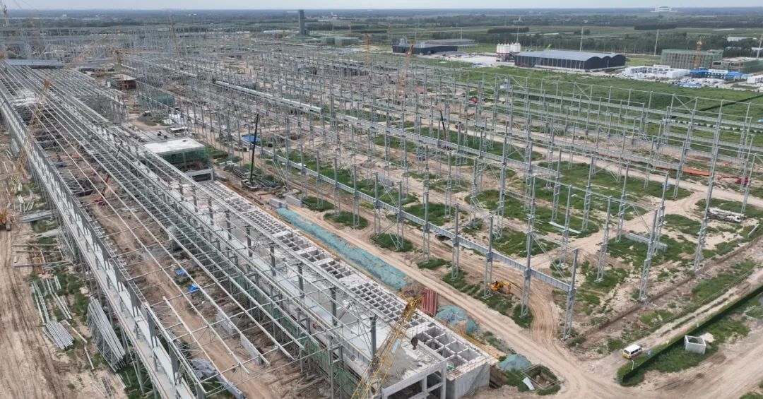 工程車來回穿梭的車轍印、大型機械的轟鳴聲、矗立的鋼結(jié)構(gòu)和封頂?shù)慕ㄖ黧w、塔吊揮舞著長臂加緊為建設(shè)者運送物資……日前,位于威縣高新區(qū)的邢臺鋼鐵有限責(zé)任公司搬遷升級項目(以下簡稱“邢鋼搬遷升級項目”)正在有序緊張施工中,2000余名工人分布在各個作業(yè)面,項目已全面進入地上鋼結(jié)構(gòu)及主線設(shè)備基礎(chǔ)施工階段,項目一期預(yù)計今年年底建成投產(chǎn)。