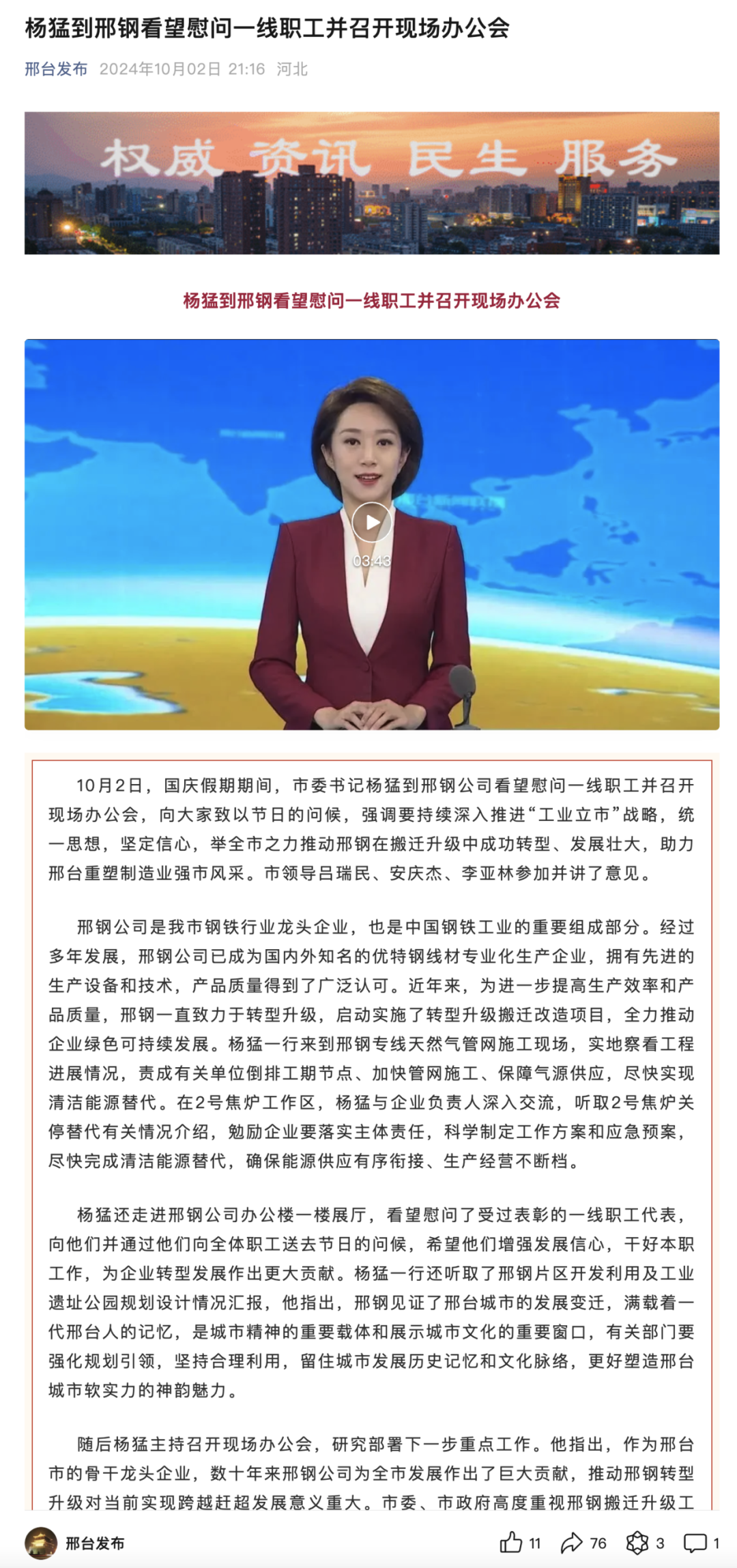 “邢臺發(fā)布 ”最新報道
