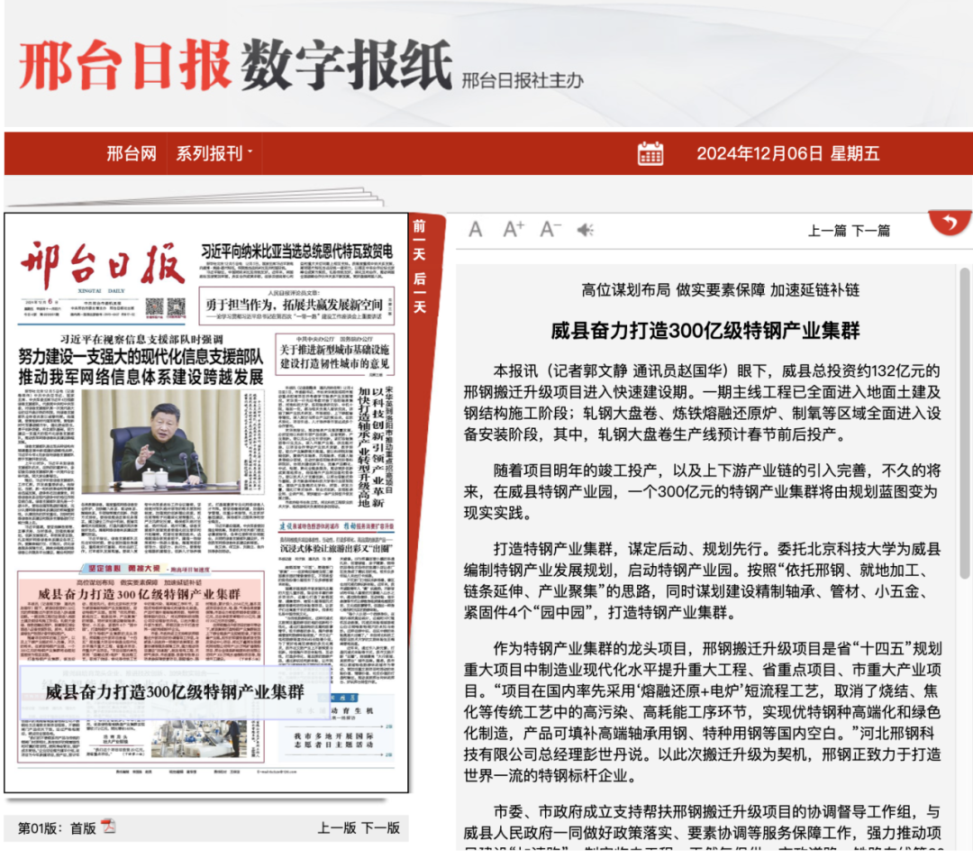 相關(guān):威縣奮力打造300億級(jí)特鋼產(chǎn)業(yè)集群