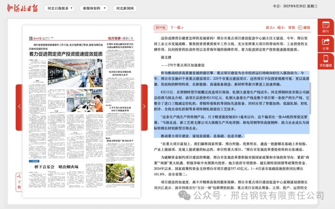 作為推動經(jīng)濟(jì)高質(zhì)量發(fā)展的強(qiáng)引擎,重點(diǎn)項目建設(shè)為全市經(jīng)濟(jì)運(yùn)行持續(xù)向好注入強(qiáng)勁動力。今年,邢臺市實(shí)施45個省重點(diǎn)建設(shè)項目、225個市重點(diǎn)建設(shè)項目,這些項目不僅投資規(guī)??捎^,更以高質(zhì)量、優(yōu)結(jié)構(gòu)的鮮明特質(zhì),在新能源、高端裝備制造、新材料等新興賽道上加速奔跑。