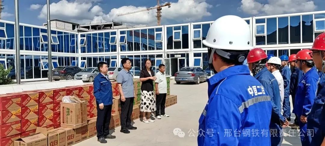新廠房里,起重機(jī)下,工人們正一絲不茍地進(jìn)行設(shè)備安裝、調(diào)試。8月22日,邢臺(tái)市總工會(huì)黨組成員、經(jīng)審委主任龐蘇、威縣總工會(huì)主席岳朝軒等一行來到邢鋼搬遷項(xiàng)目建設(shè)工地,為連日來被潮熱天氣“烤驗(yàn)”的建設(shè)者們送來“清涼”大禮包和真摯的慰問。公司副總經(jīng)理馬保良出席了“送清涼”慰問品發(fā)放儀式。